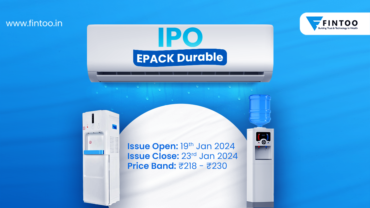 19 Jan Equity InvestmentsIPO & NFO EPACK Durable Limited (Avoid) Highlights Issue Size –: 27,828,351 shares Issue Open/Close – 19 Jan / 23 Jan, 2024 Price Band (Rs.) 218 – 230 Issue Size (Rs.) – 6,400 mn Face Value (Rs) 10
