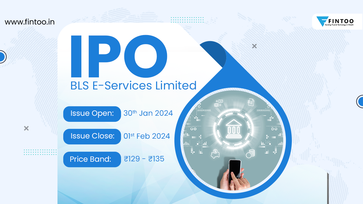 30 Jan Equity InvestmentsIPO & NFO BLS E-Services Limited (Subscribe) Highlights Issue Size –: 23,030,000 shares Issue Open/Close – 30 Jan / 01 Feb, 2024 Price Band (Rs.) 129 – 135 Issue Size (Rs.) – 3,109 mn Face Value (Rs) 10 Lot Siz