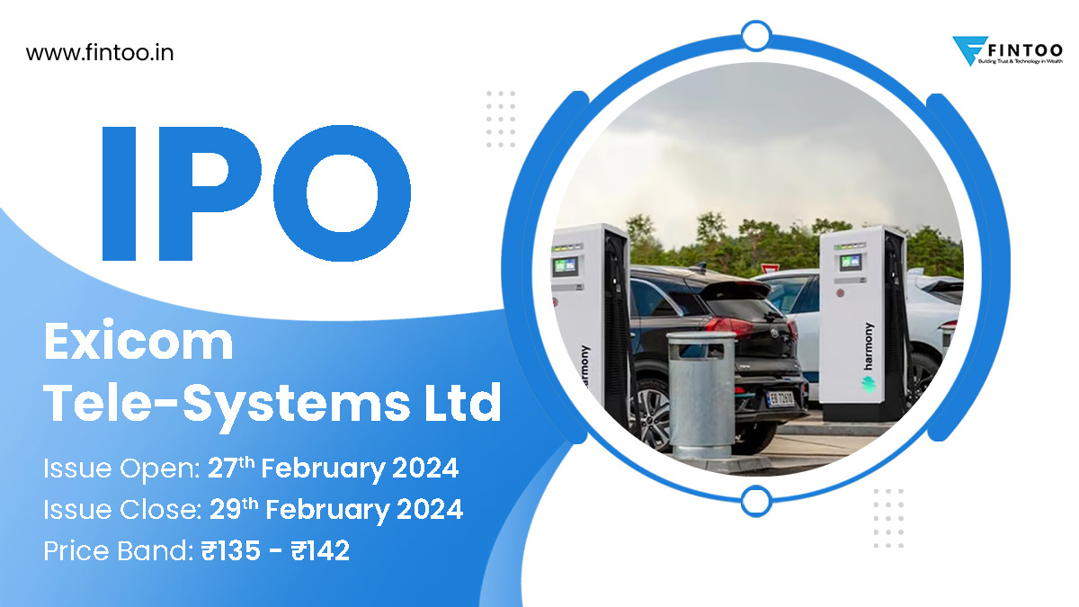 27 Feb Equity InvestmentsIPO & NFO Exicom Tele-Systems Ltd. (Subscribe) Highlights Issue Size –: 30,211,214 shares Issue Open/Close – 27 Feb / 29 Feb, 2024 Price Band (Rs.) 135 – 142 Issue Size (Rs.) – 4,290 mn Face Value (Rs) 10